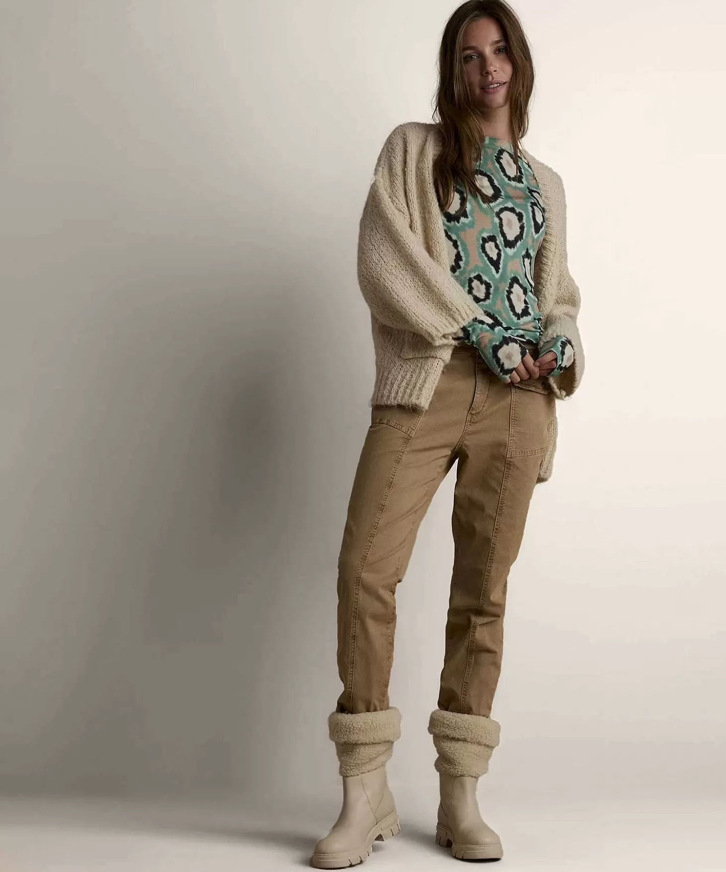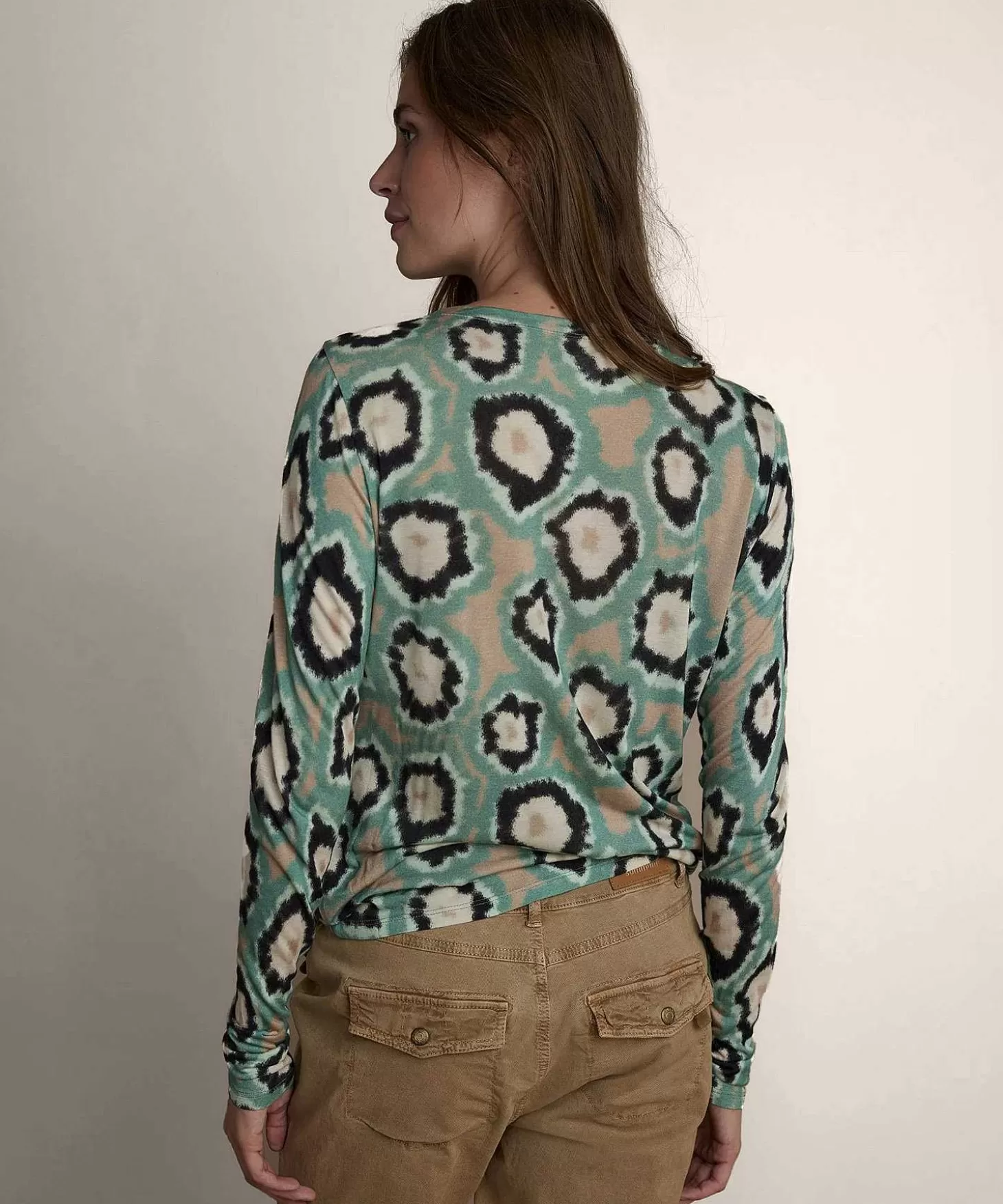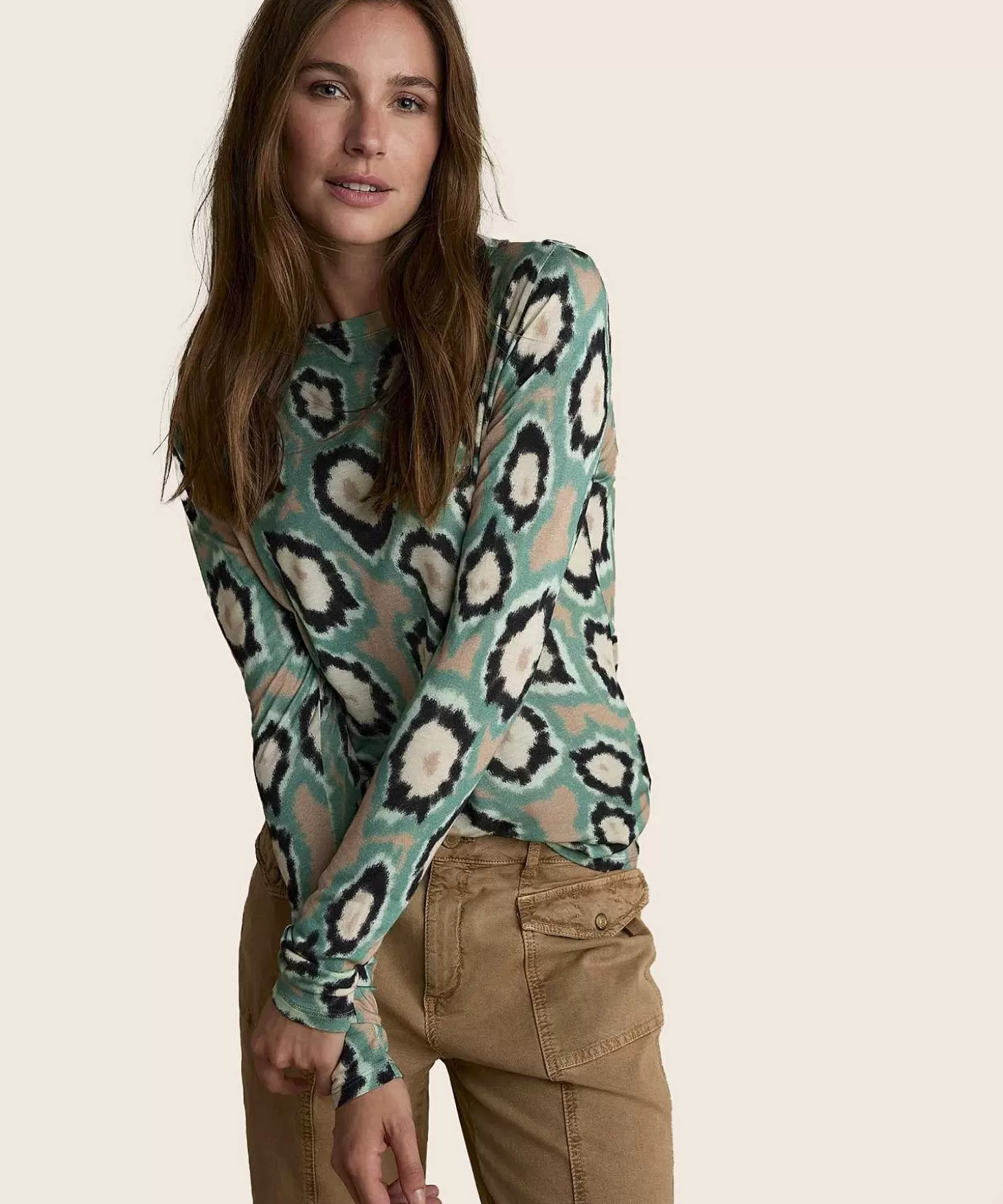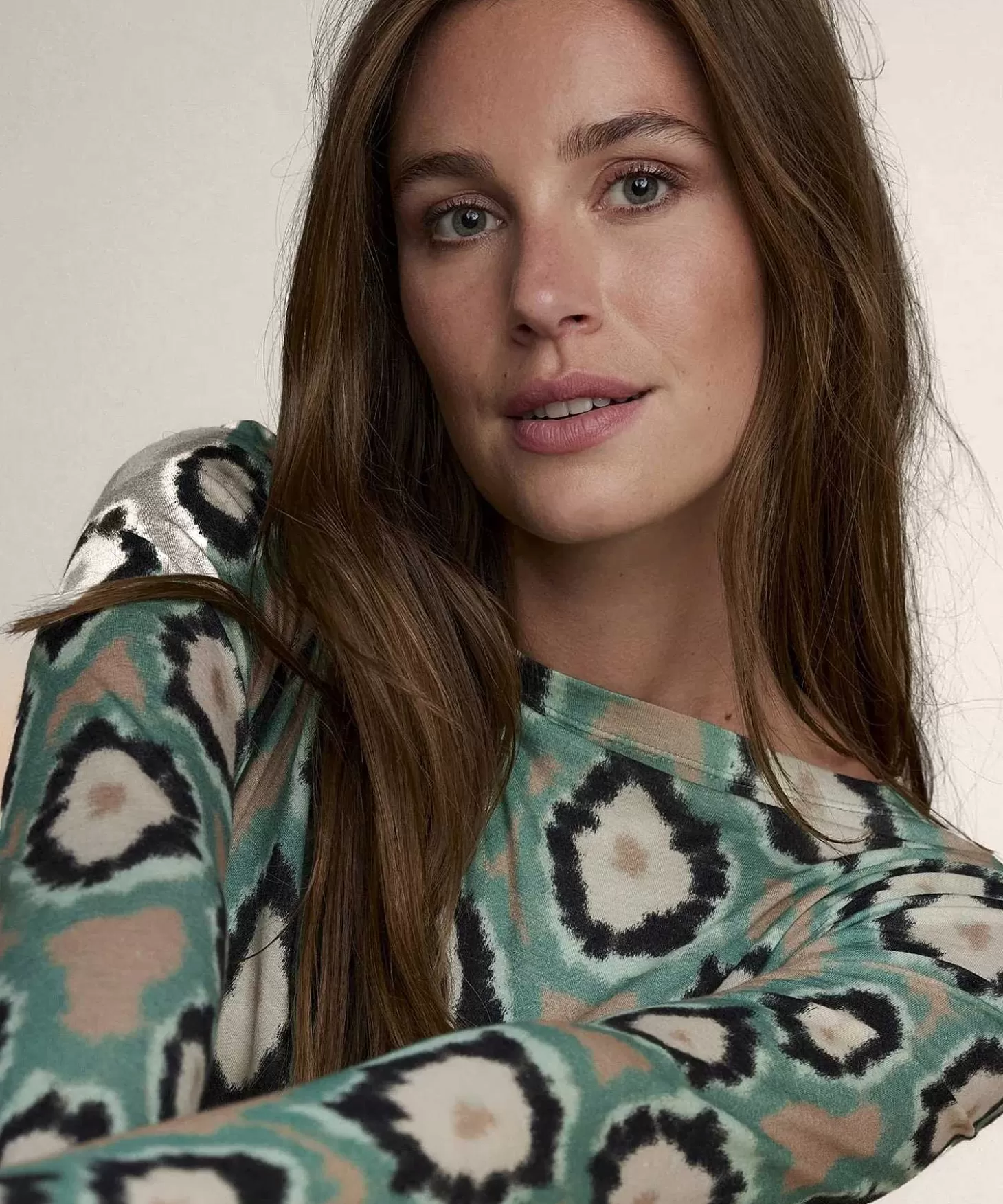 Blurred Lines Met Dit Summum Shirt Met Blurred Circles Print. Wat Een Geraffineerd Patroon In Ecru, Zand, Mint En Antraciet En Zie Je Haar Asymmetrisch Geplooide Schouderdeel? Je Draagt Dit Relaxte Model Met Veel Uit Jouw Garderobe, Zoals Met Een Fun Fur Gilet, Een Jeans En Boots Op Boho Citytrip. Maar Ook Met Een Pantalon Of Vegan Leren Rok (Stop Een Tipje Van De Zoom In De Tailleband Voor Enige Taillering) En Laarsjes Ga Je Picture Perfect Naar Kantoor Of Een Feestje.