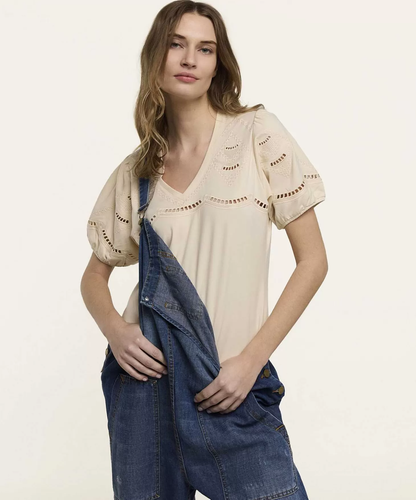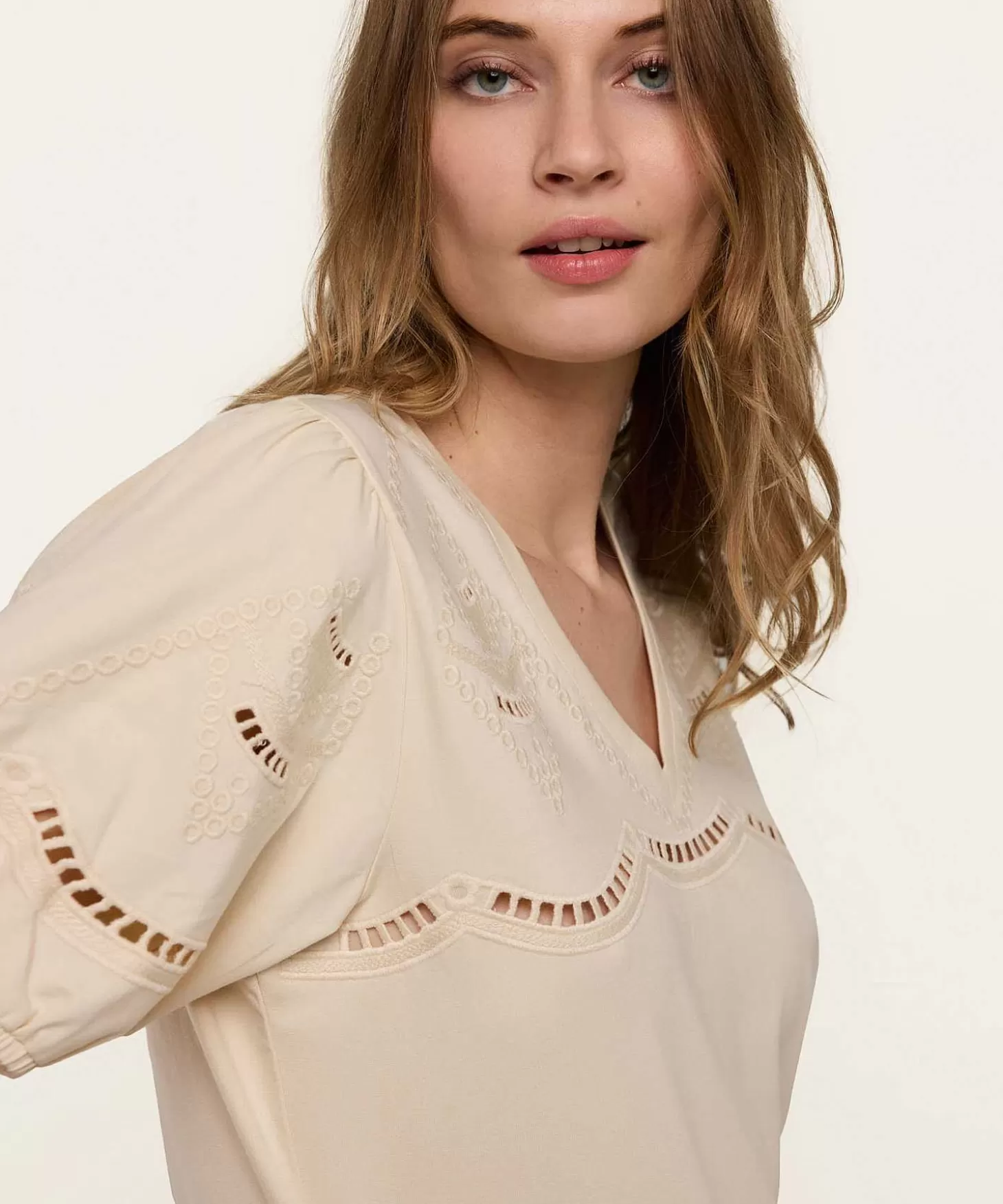 Het Summum Shirt Met Broderie Is Een Prachtig Kledingstuk Dat Perfect Is Voor De Zomer. Met Zijn Offwhite Kleur Straalt…