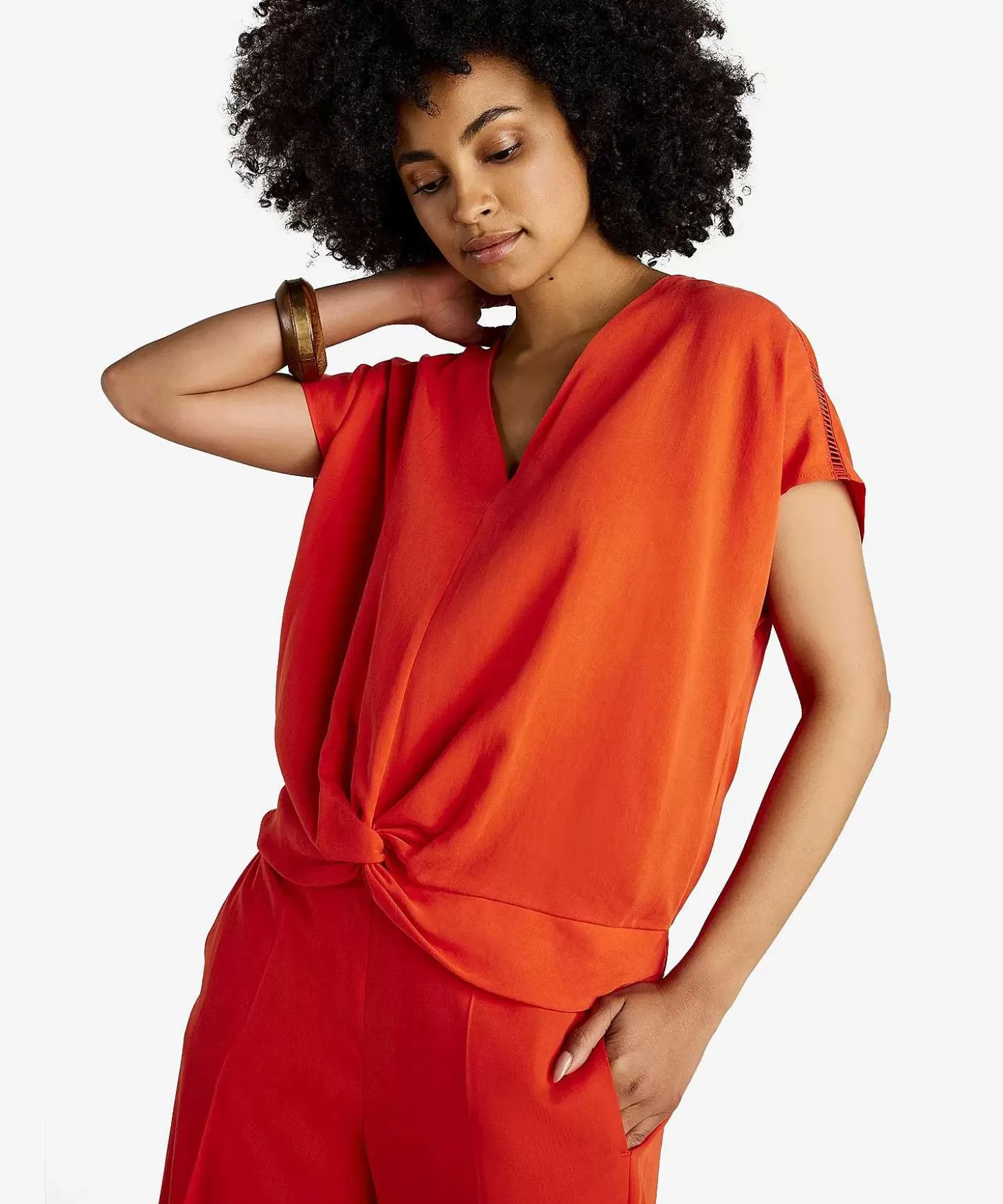 Deze Summum Top Ademt Op En Top Zomer. Wat Een Luchtig En Los Model Met Haar Geraffineerde Knoopdetail Aan De Zoom, V-H…