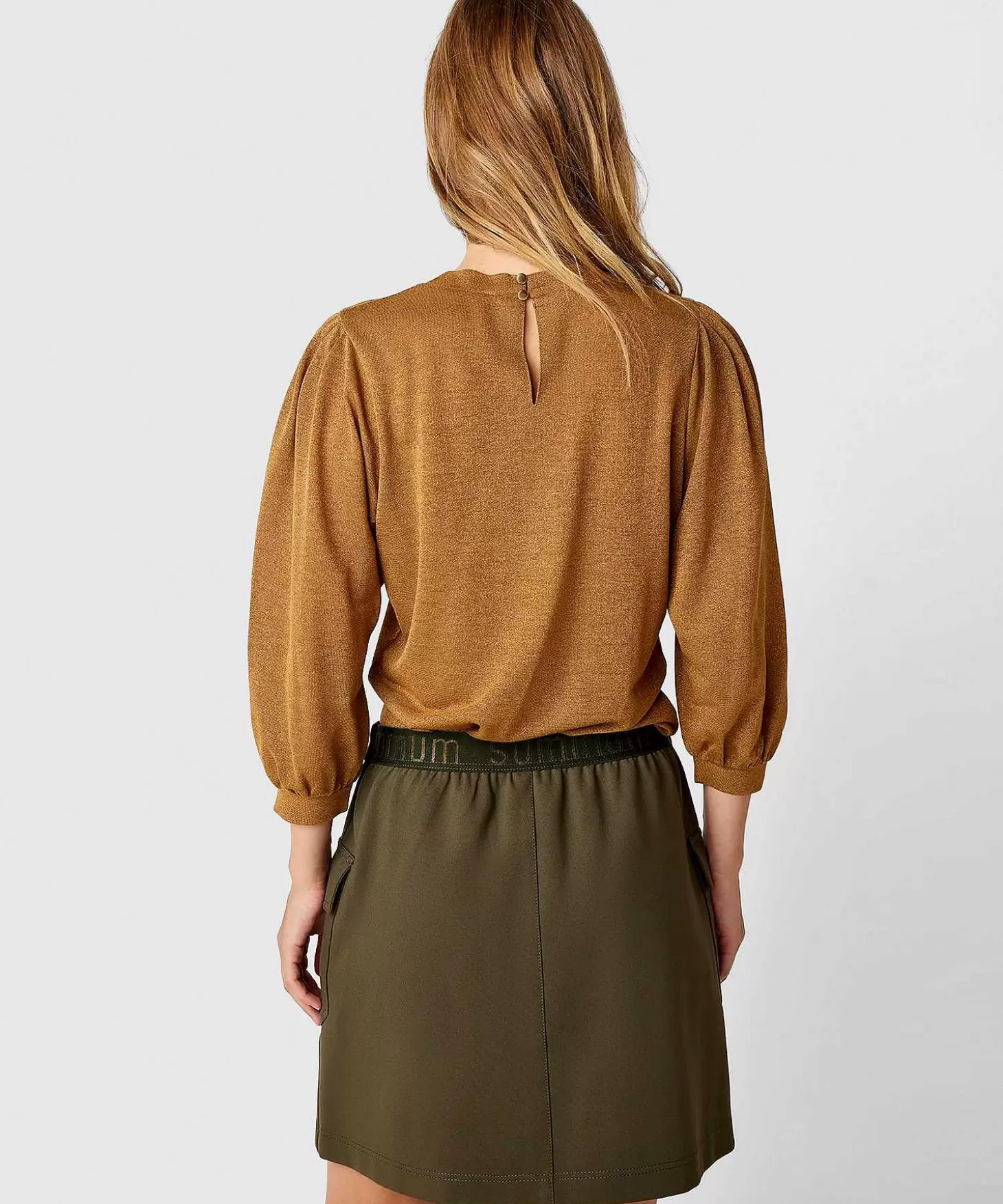 Sparkle & Shine Met Deze Summum Top In Lurex Met Pofmouw. Wat Een Sprankelend Tricot (Stretcht Weinig) In Dunne Kwaliteit, Doorregen Met Sprankelend Lurexdraad. Deze Top Met Plat Boordje, Wijde Pofmouw Tot Net Over De Elleboog En Feminien Lichaamsvolgend Lijntje (Knelt Niet) Geeft Feestelijke Glitters Aan Ieder Outfit. Ze Sluit Met Goudkleurige Knoopjes Achter. Draag Haar Met Een Wollige Spencer Of Een Xl Vest, Een Jeans En Boots En Ga Comfy & Classy Op Citytrip. Maar Ook Met Een (Print)Blazer In Een Trendkleur, Een Pantalon En Laarsjes Ga Jij Fashionable Forward Op Pad. Dankzij Haar Rosékleurige Lurex Op Camel (Cognac) Staat Ze Vele Kleurtypes, Wat Wil Je Nog Meer? Samenstelling: 70% Viscose, 30% Metallic Garen.