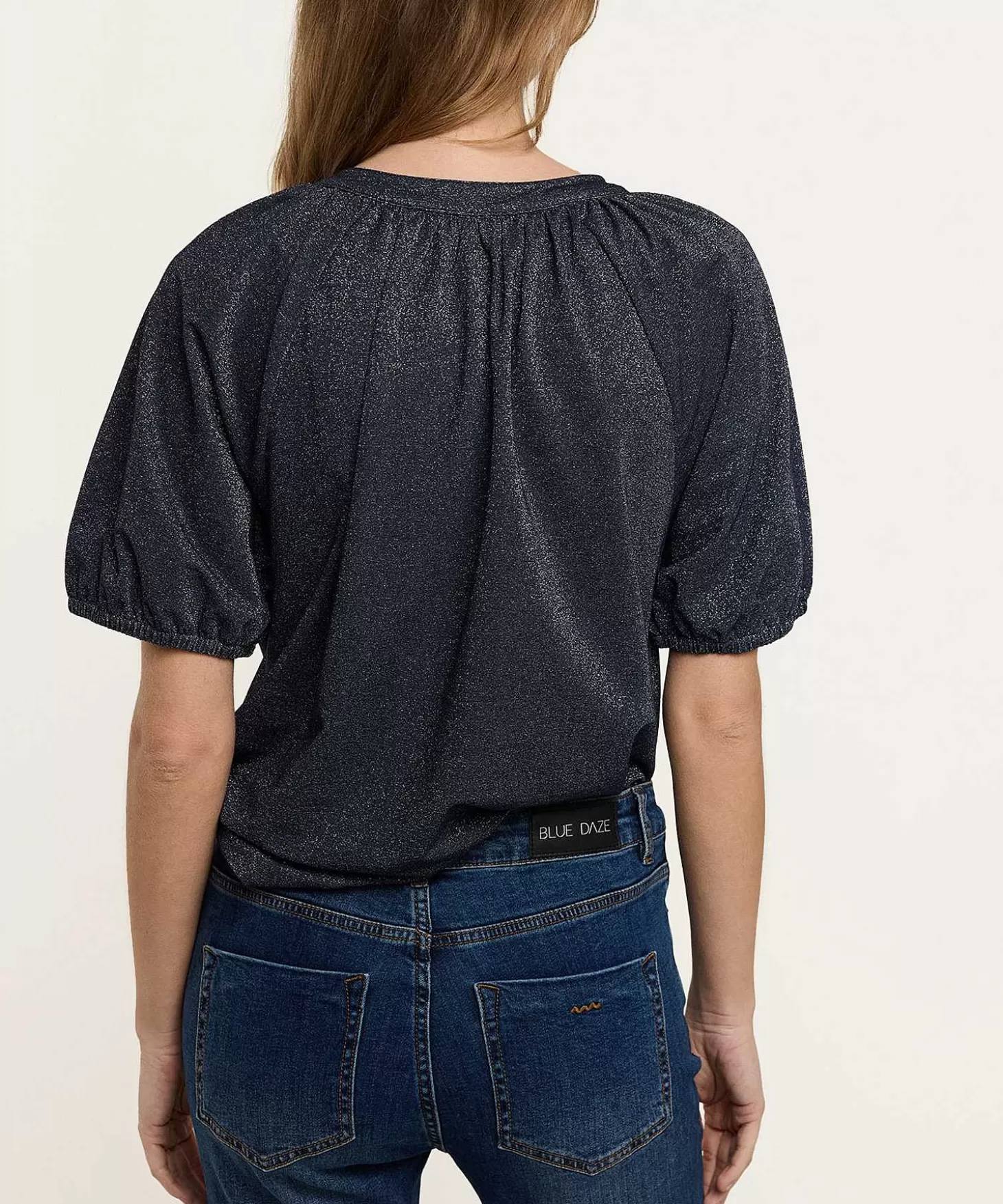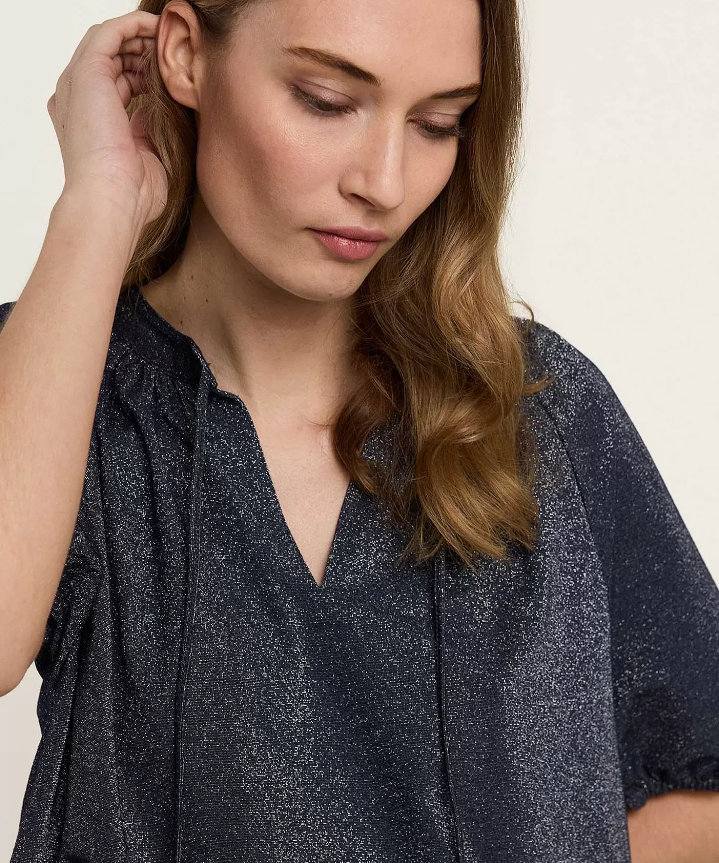 Vind De Perfecte Combinatie Van Stijl En Comfort Met Deze Summum Top, Gemaakt Van Elastische Lurex-Stof Die Niet Alleen Heerlijk Zit Maar Ook Een Subtiele Glans Toevoegt Aan Je Outfit. Deze Top Is Speciaal Ontworpen Voor De Moderne Vrouw Die Waarde Hecht Aan Zowel Uitstraling Als Gemak. De Metallic Garen Weven Een Vleugje Glamour Door Je Dagelijkse Garderobe, Terwijl De Korte Mouwtjes Met Elastiek En De Elastische Onderkant Zorgen Voor Een Perfect Draagcomfort. De Ronde Hals Met Split En Striksluiting Voegt Een Speels Detail Toe En Maakt Het Eenvoudig De Top Een Andere Look Te Geven. Samenstelling: 44% Polyester, 26% Metaalgaren, 25% Viscose, 5% Elastan.