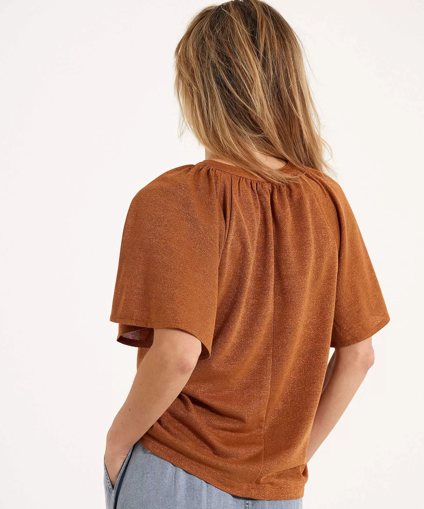 Vlinder De Zon Tegemoet Met Deze Lurex Summum Top Met Korte Vlindermouw. Wat Een Sprankelende Cognac Kleur En Wat Een F…