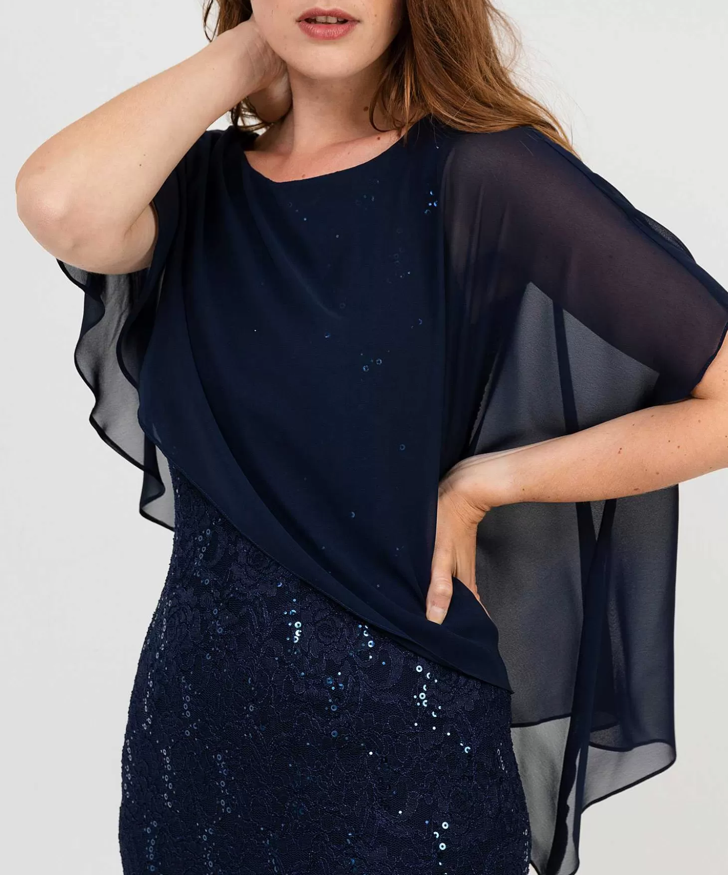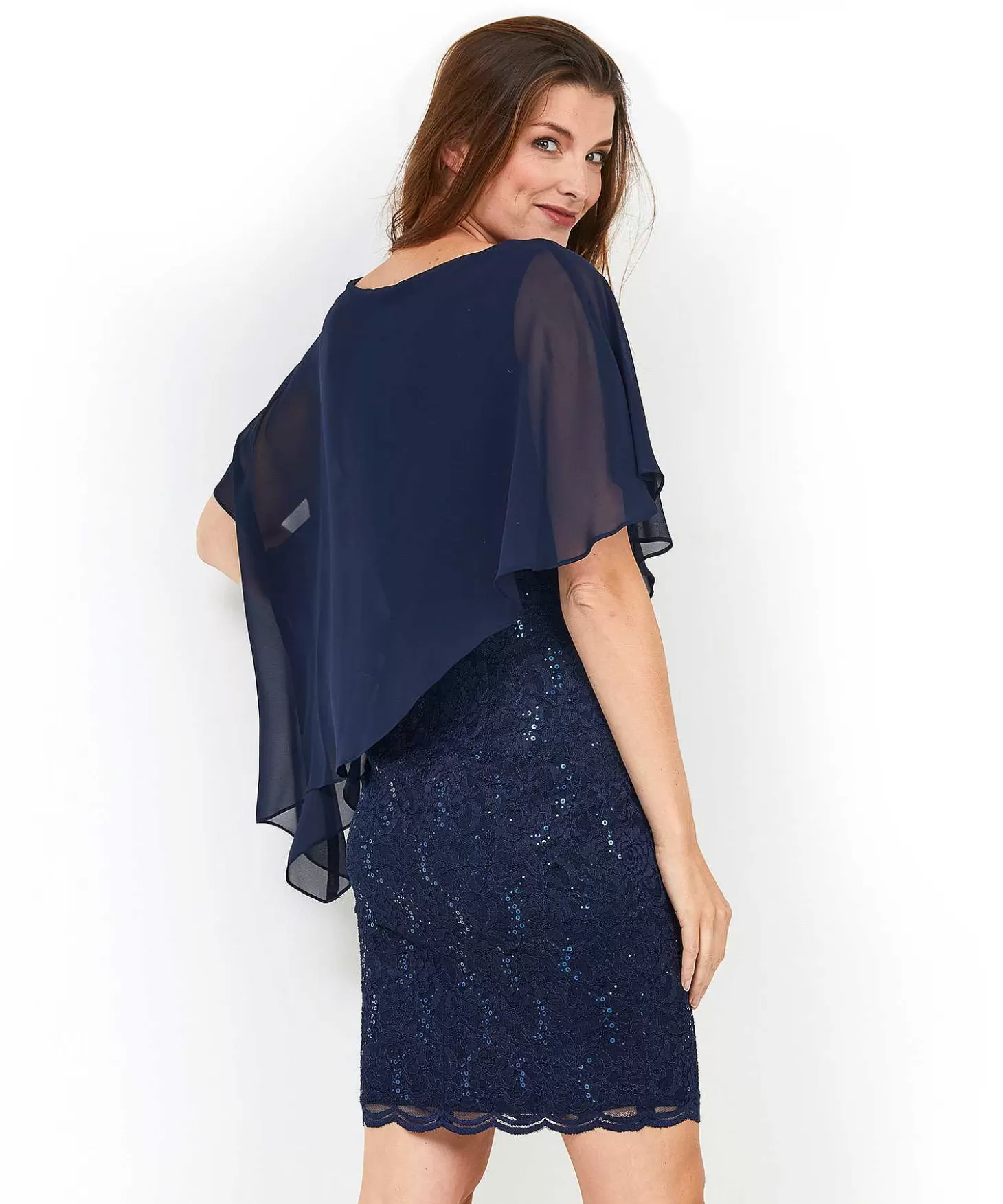 Deze Knielange Jurk Van Swing Is Een Absolute Must Have Als Je Eindelijk Weer Iets Moois Aan Wilt Trekken Na Een Periode Vol Comfortwear. De Mouwloze Jurk (Met Onderjurk) Is Één En Al Feeërieke Extravaganza: De Fonkelende Pailletten, Het Bloemrijke Kant, Het Transparante Voile – Romantisch To The Máx. Het Geeft Een Mooi Aangesloten Silhouet, Terwijl De Asymmetrische Cape Van Voile Jouw Armen Iets Bedekt (En De Jurk Nét Dat Spannende Tintje Geeft). Verkrijgbaar In Marine En Blush. Samenstelling: 100% Polyester | 97% Polyester, 3% Elastan | 95% Polyester, 5% Elastan.