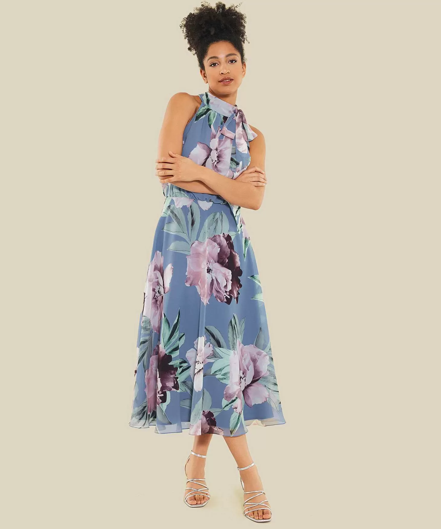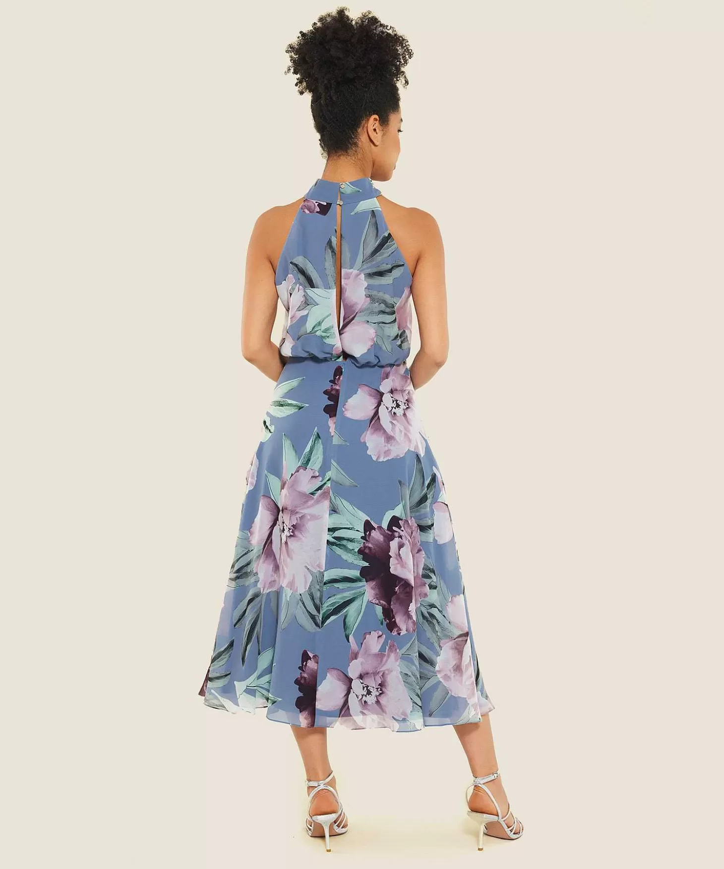 Deze Swing Halterjurk Vraagt Om Swingen Op De Dansvloer En Feesten Tot In De Kleine Uurtjes. Zie Je Haar Oogstrelende Flowerprint (Pioenrozen In Vergrijsde Kleuren Als Oudroze, Offwhite, Grijsgroen, Mint En Donker Aubergine Op Een Grijsblauwe Basis En Voel Je Haar Luchtige Voile (Satijn Gevoerd)? Haar Halterhalslijn Laat Elegant Je Schouders Vrij, Ze Heeft Een Decoratief Strikdetail En Loopt Vanuit Onder De Borst Uit In Een Wijde Klokkende Rok Tot Halverwege De Kuit. Ook Op De Rug Is Ze Eye-Candy Met Haar Keyhole Sluiting Met Split En Blinde Ritssluiting Vanaf De Taille Naar Beneden. Waar Is Het Feestje? Samenstelling: 100% Polyester. Voering: 97% Polyester, 3% Elastan. Voering 2: 92% Polyester, 8% Elastan.
