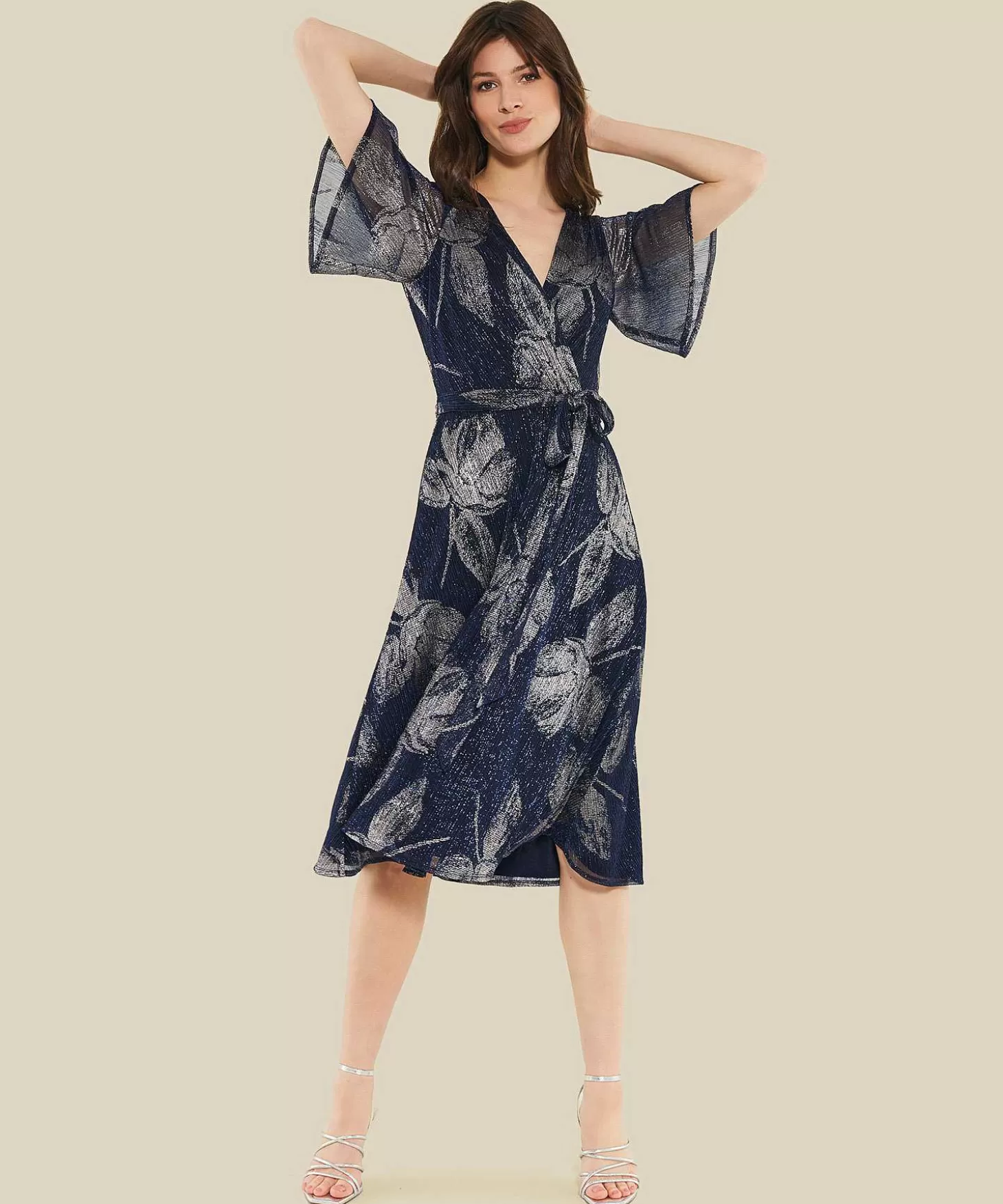 Swing Overslagjurk Lurex Flowers Fashion
