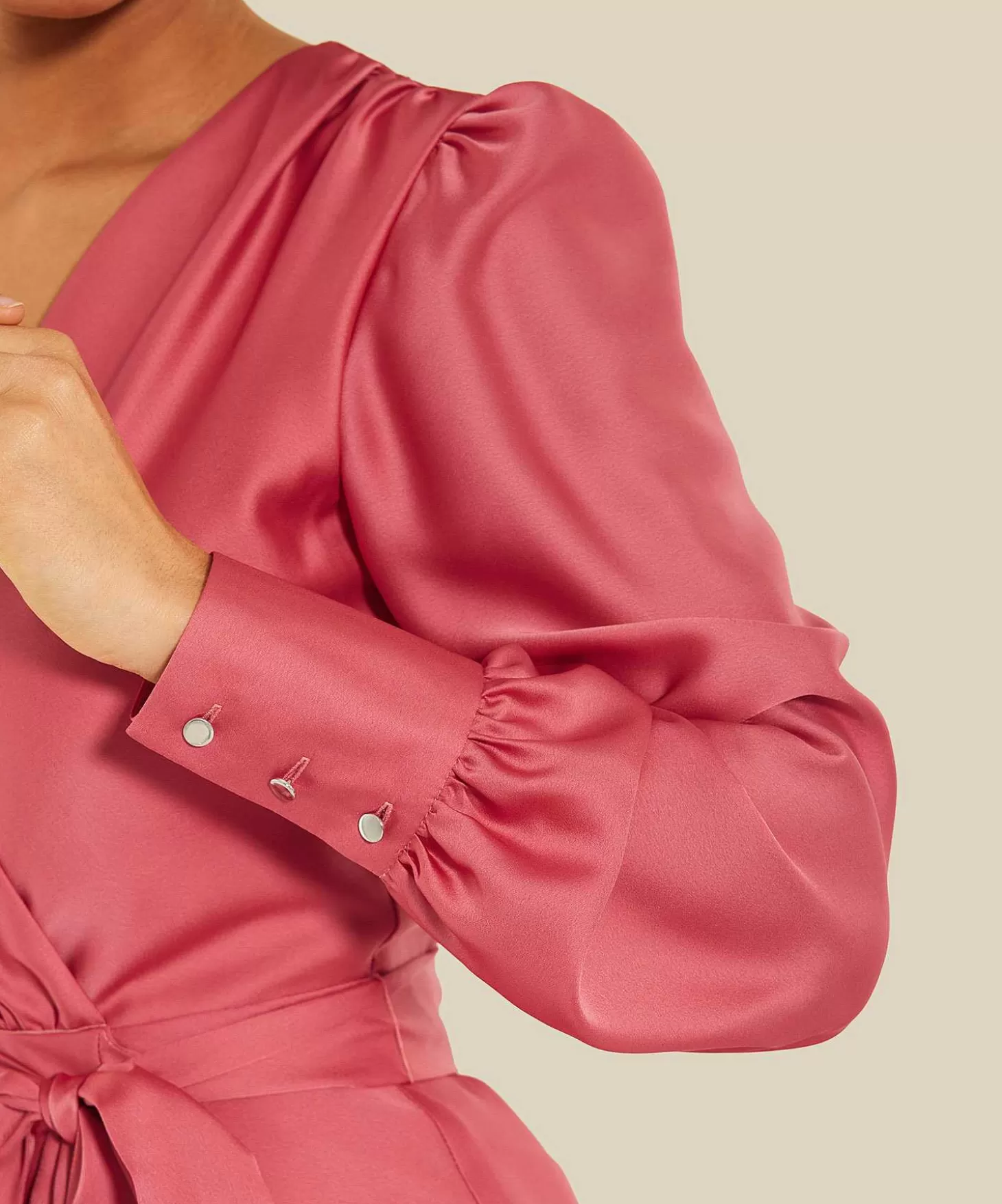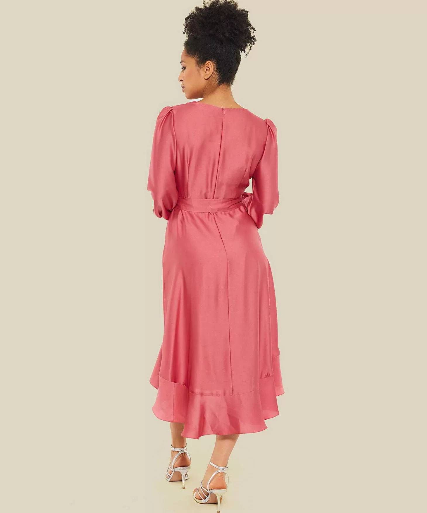 We Love To Party En Deze Swing Jurk Met Volants Heeft Dat Helemaal Begrepen. Wat Een Chique & Feminien Model Met Haar Vaste Overslagje Bij De Hals, Strikceintuur En Stroken En Volants Langs De Rok. Achter Langer Dan Voor En Met Een Blinde Rits Zie Jij Er Van Alle Zijden Feestelijk Uit. Zie Je Haar Elegante Manchetten Met Knoopjes, Elegante Koraalkleur En Soepel Satijn? Show Stijlvol Je Beentjes (Van De Vloer) En Voel Je Op Elke Feestelijke Gelegenheid Perfect Gekleed. Satijn Gevoerd Beweegt Ze Glansrijk Om Je Heen En Ze Matcht Geweldig Met Accessoires In Matching Tinten Of Een Printje. Waar Dansen Jullie Samen Heen? Samenstelling: 100% Polyester. Onderjurk/Voering: 97% Polyester, 3% Elastan.