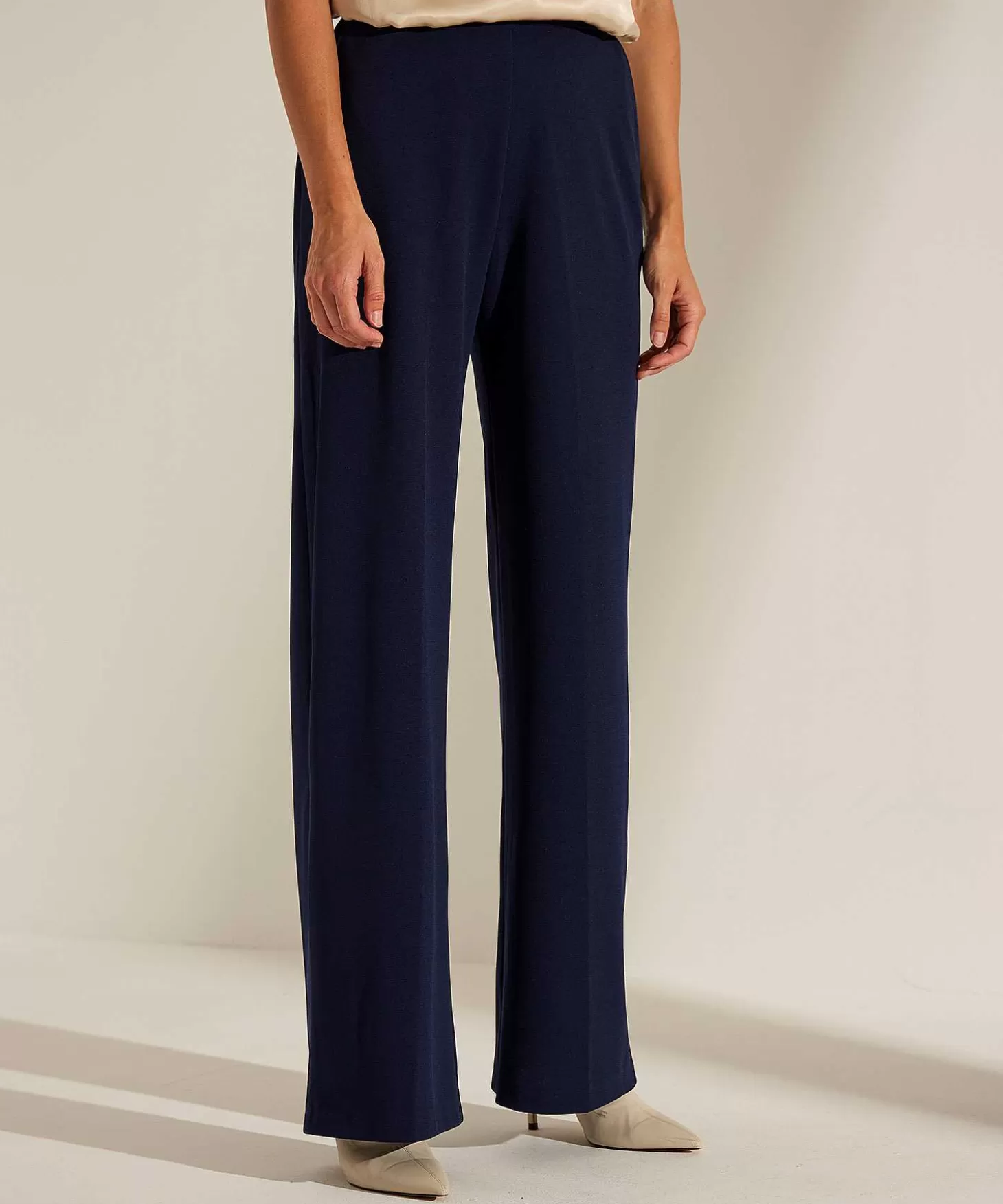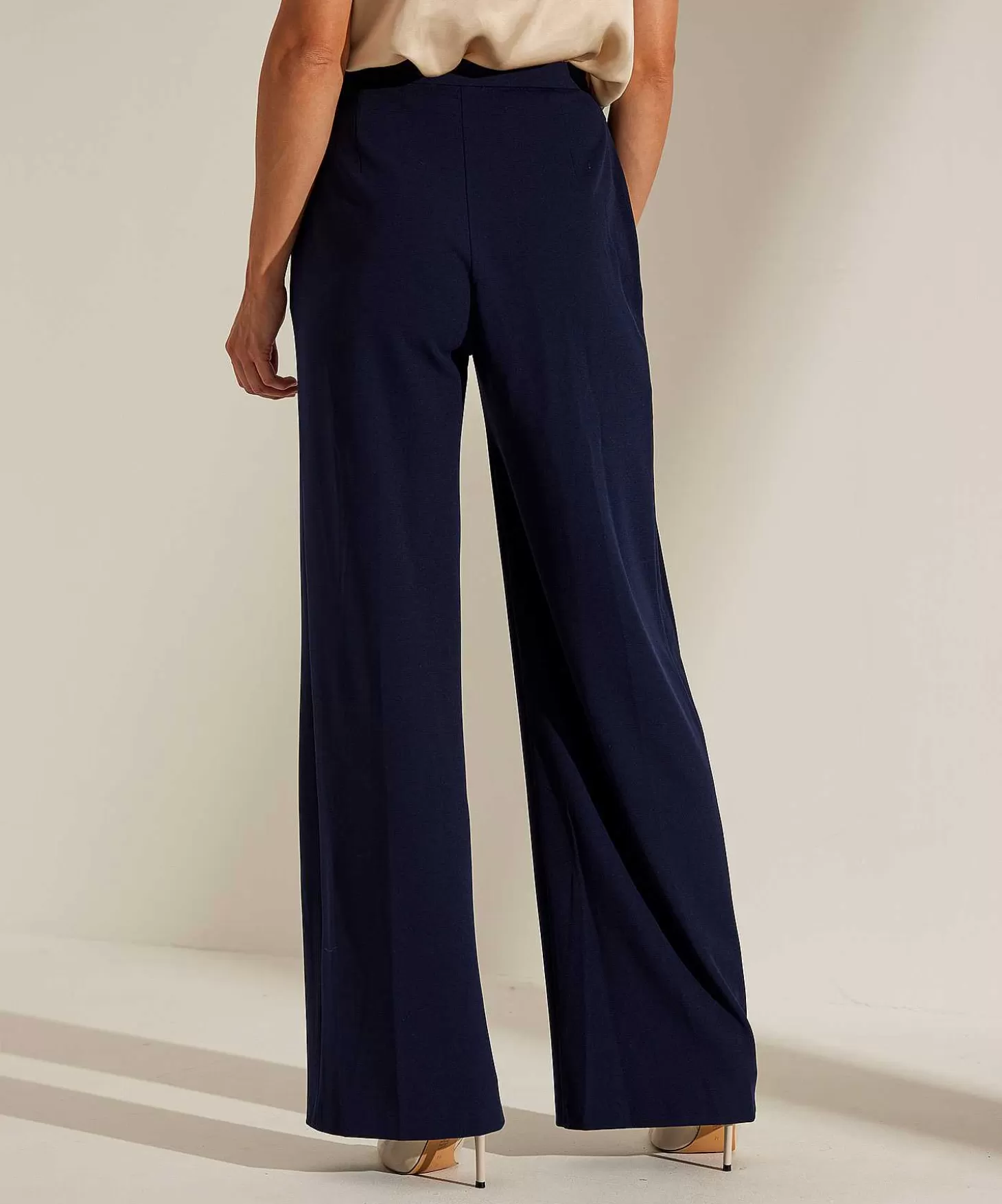 Deze Swing Wide Leg Broek In Soepele Crêpe Heeft Absoluut Pantalon-Allure. Zie Je Haar Minimalistische Model Met Verborgen Rits In De Zijnaad, De Gladde Tailleband, Steekzakjes, Persvouwen En Eindeloos Lange Pijp? In Nachtblauw Past Ze Bij Veel Uit Jouw Feestelijke Of Zakelijke Garderobe En Ze Matcht Perfect Met De Swing Top Pailletten Knoopdetail En High Heels. Maar Ook Met Een Klassieke Witte Blouse, Een Top + Vestje/Blazer En Loafers Zie Je Er Overal Picture-Proof Uit. Samenstelling: 96% Polyester, 4% Elastan. Voering Zakken: 100% Polyester.