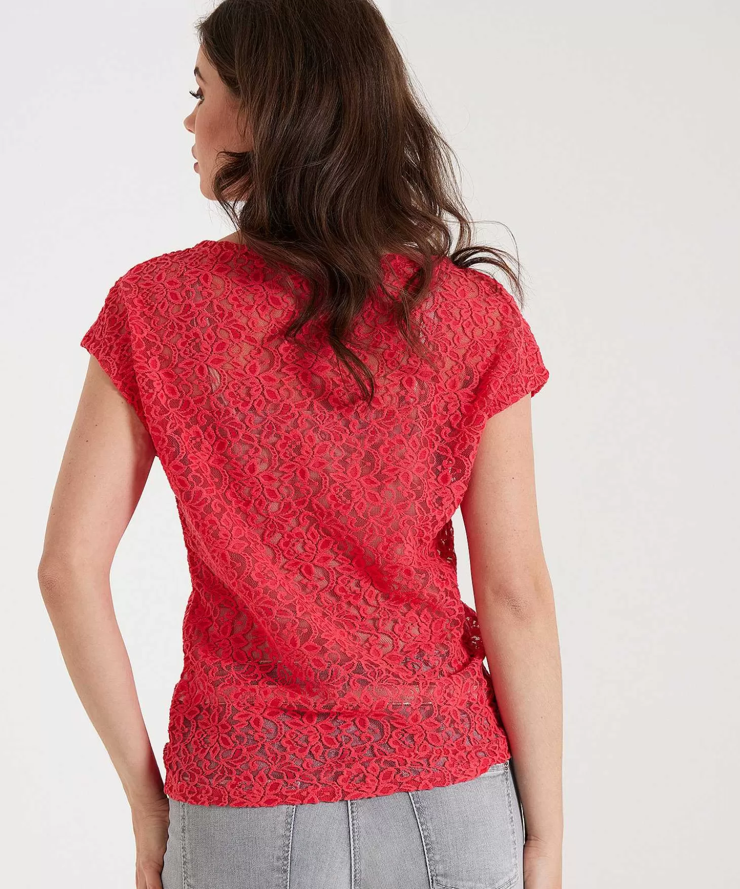 We Love Lace En Deze Top Van Kant Is Een Schoonheid. Zie Je Haar Geborduurde Bloemen Op Gaasstof (Met Lichte Stretch) En Sportieve Losse Fit Met Aangeknipt Kort Mouwtje? In Frisse Lentekleuren Koraal & Lila, Geeft Ze Elke Outfit Flowerpower. Draag Haar Nu Al Onder Een Blazer Of Vest Met Een Pantalon, Jeans Of Sweatrok. Sneakers, Laarsjes, Loafers Of High Heels Eronder En Je Bent Fashionable Op Weg. Bij Hoge Temperaturen Draag Je Een Huidkleurig Hemdje Onder Of Juist Eentje In Een Contrastkleur. Let’S Get Lacy! Samenstelling: 50% Polyamide, 45% Katoen, 5% Elastan.