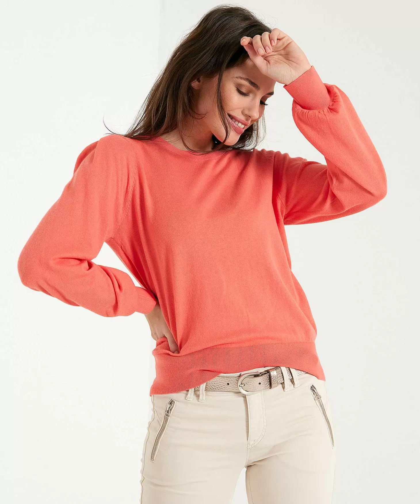 In Fris Papaya Koraal (Aloha!) En Met Een Toefje Zijde Verovert DezeTrui Met Ballonmouw Geruisloos Jouw Hart. Wat Een F…