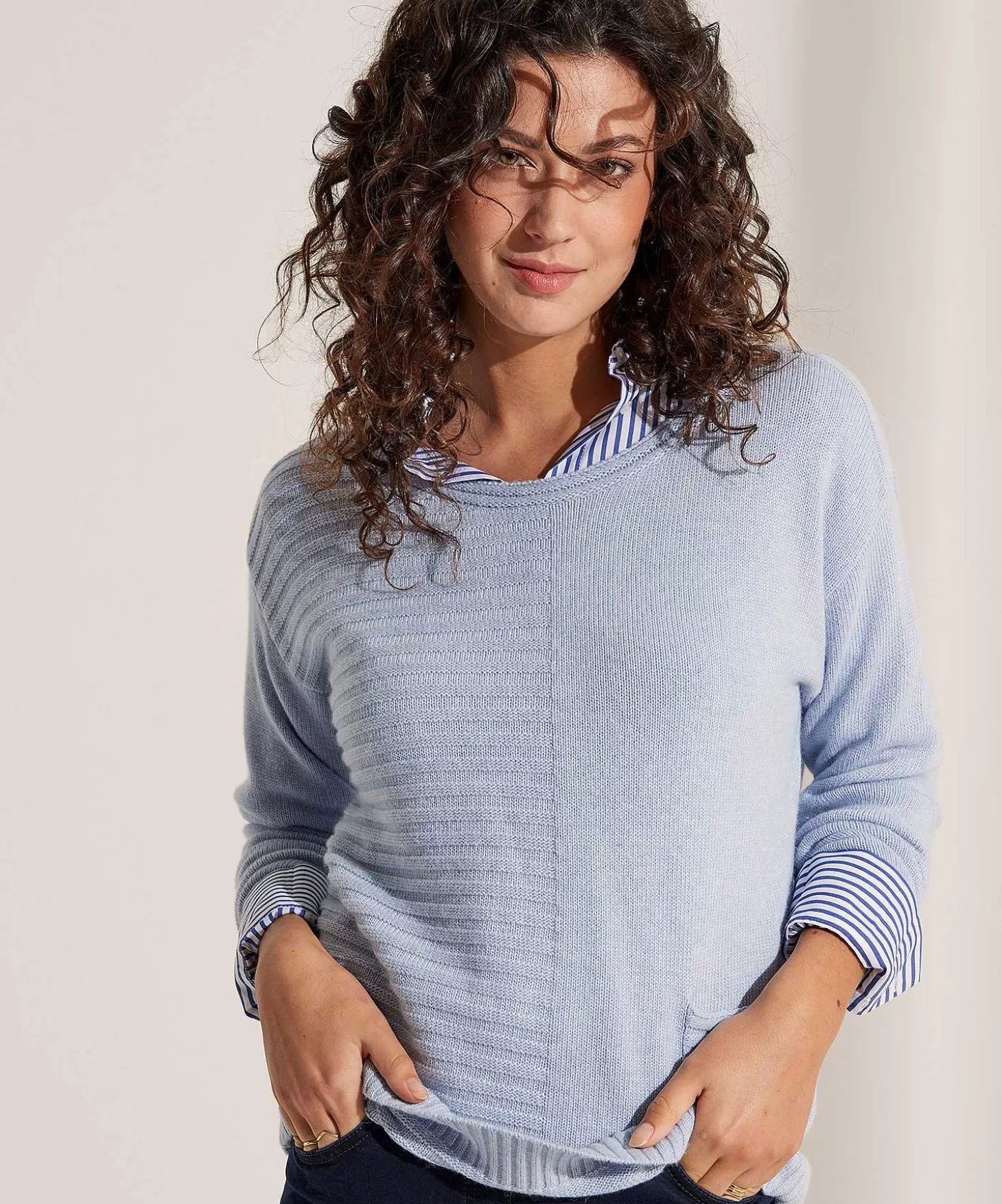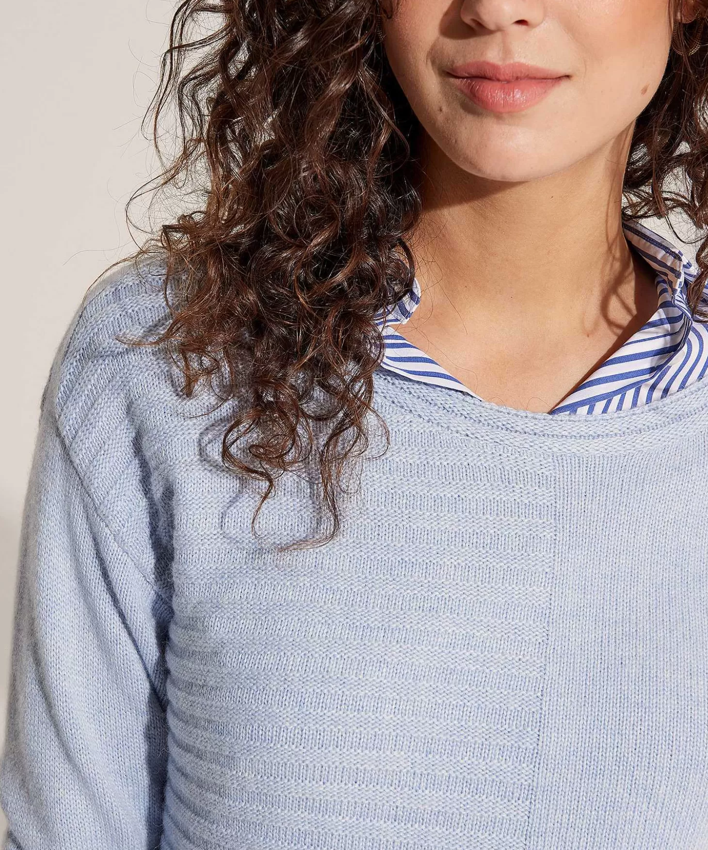 Uit De Collectie Van , Een Comfortabele Pullover Die Van Alle Markten Thuis Is. Het Recht Vallende Model Heeft Een Ronde Hals En Is Gebreid In Een Afwisselend Recht Breisel En Een Rib-Gebreid Horizontaal Patroon, Met Een Opgestikt Zakje In Horizontaal Breisel. De Trui Is Heerlijk Warm En Is Beschikbaar In Twee Varianten, Deep Fuchsia En Gemêleerd Zacht Blauw. Combineer De Blauwe Trui Met Je Broek Of Rok In Winterwit Of Zandtinten. De Fuchsia Combineer Je Op Je Jeans Of Wide Leg Met Print. Lekker Warm Door De Toevoeging Van Wol En Alpaca. Samenstelling: 38% Viscose, 35% Polyamide, 22% Wol, 5% Alpaca.