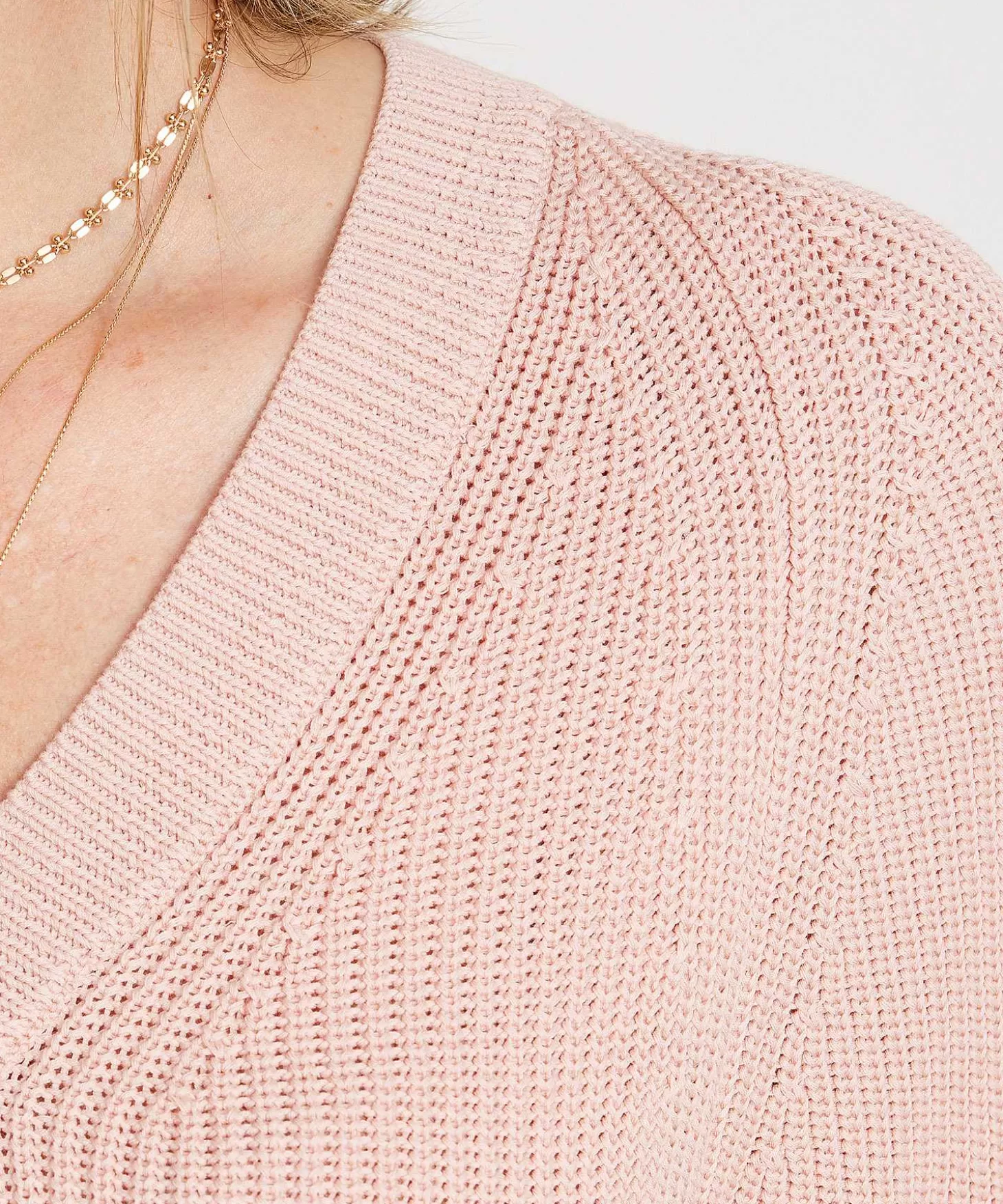Met Haar Zachtroze Of Romige Biscuit Kleur, Soepel ‘Droog’ Ribbreisel En Vrouwelijke V-Hals Is Dit Een Perfecte Trui. V…