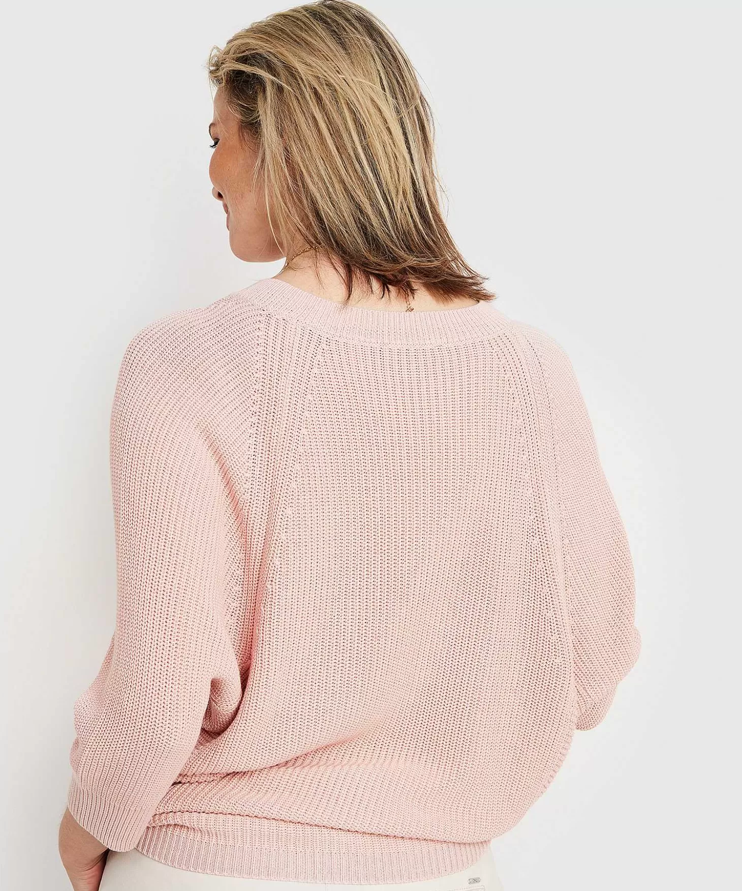 Met Haar Zachtroze Of Romige Biscuit Kleur, Soepel ‘Droog’ Ribbreisel En Vrouwelijke V-Hals Is Dit Een Perfecte Trui. Van Voor- Tot Najaar Te Dragen En Wordt Het Écht Koud Dan Draag Je Er Een Longsleeve Of Friswitte Blouse Onder. Kortom, Deze Trui Zou Wel Eens Je Absolute Favoriet Kunnen Worden! Het Model Is Extra Leuk Door De Ingezette Zijstukken Die Het Effect Van Een Vleermuismouw Vormen. De Mouwen Vallen Op 3/4 Lengte, De Trui Valt Een Handbreedte Onder De Heup. Samenstelling: 50% Modal, 50% Katoen.