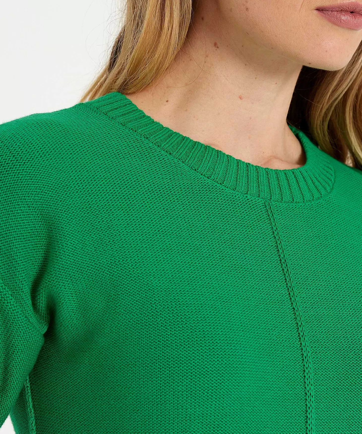 Minimalistisch Steelt Dit Truitje Direct Jouw Hart. Wat Een Pittig Model Met Haar 3/4E Mouw, Brede Ribboorden En Verticale Siernaad Middenvoor En Wat Een Vrolijke Groene Kleur. Van Zacht Ademend Katoen Draag Je Haar Nu Al Onder Een Xl Blazer Of Over Een (Witte) Blouse Of Printshirt. Pantalon, Jeans, Maxi-Rok Of Printbroek Erbij + Laarsjes, Boots, Instappers Of Sneakers En Jij Gaat Fashionable De Hort Op. Van Deze Allrounder Ga Je Veel Plezier Beleven. Samenstelling: 100% Katoen.