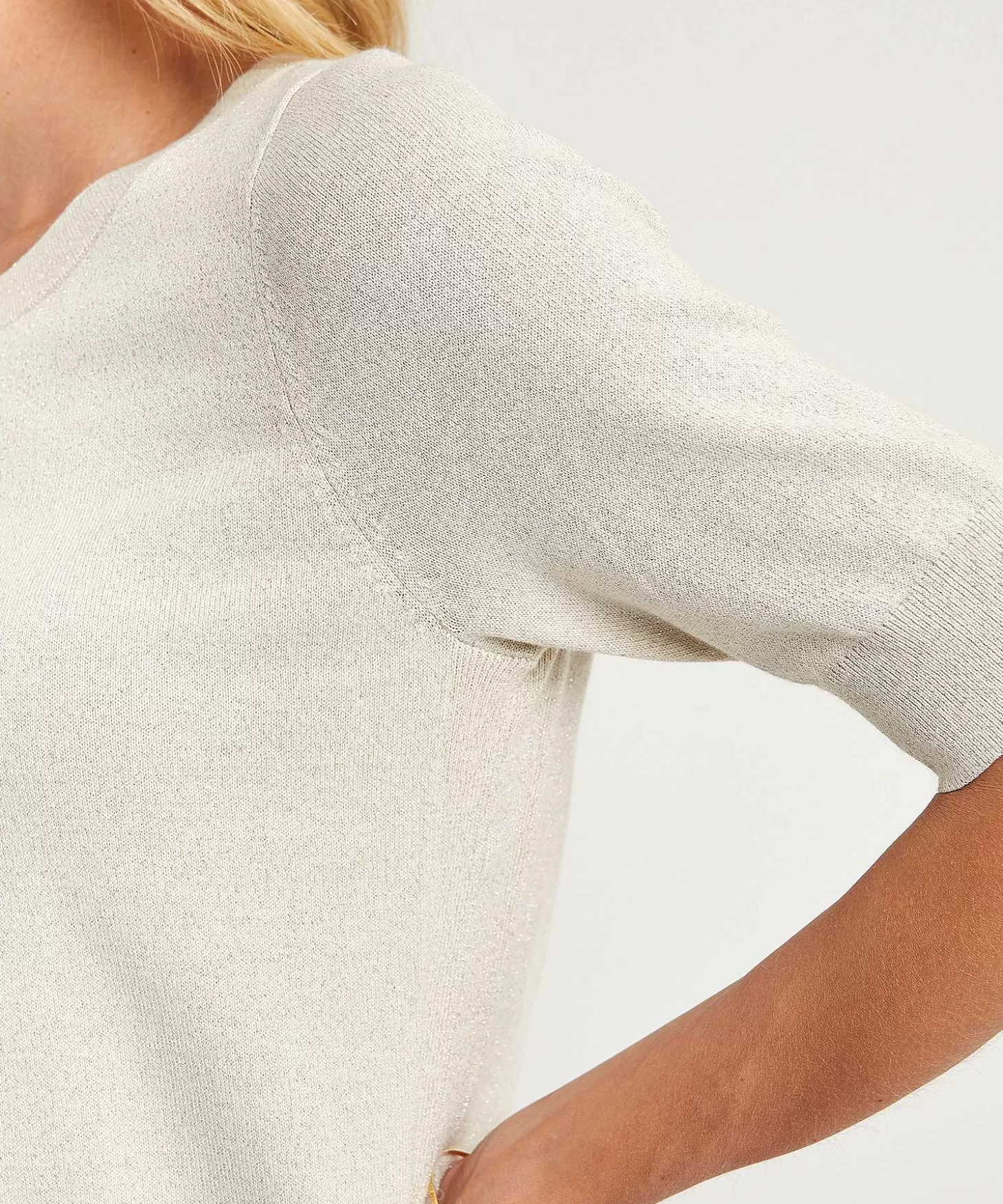 Het Truitje Met Korte Mouw Draag Je Stijlvol De Seizoenen Door. Wat Een Streelzacht Model In Aangename Katoen En Wat Een Fijne Kleurtjes. In Wit, Kiezel + Lurex, Roze, Fuchsia, Koraal, Oceaan En Marine Is Er Altijd Een Kleur Naar Jouw Modehart En Je Draagt Haar Overal Boven Of Onder. Nu Nog Onder Een Blazer Of Jasje En Bij Stijgende Temperaturen Als Haar Fraaie Zelf Met Een Printboek, Pantalon, Vegan Leren Rok Of Jeans. Dit Model Heeft Een Lichaamsvolgend Lijntje En Aansluitende Korte Mouwtjes. Samenstelling: 80% Katoen, 17% Polyamide, 3% Elastan.