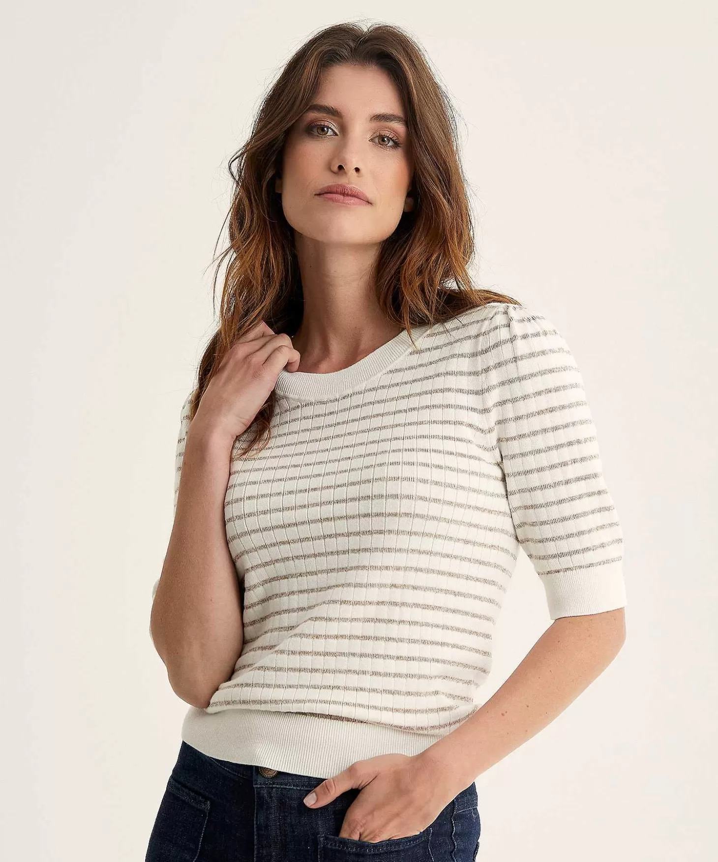 Stripes Forever Met DitTruitje In Lurex Streep. Wat Een Verfijnde Doordrager Met Haar Frisse Offwhite Of Klassieke Zwar…