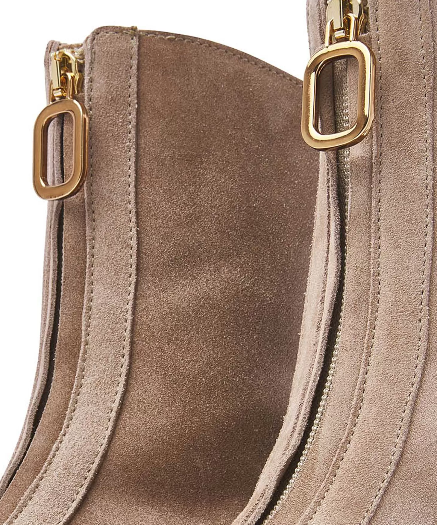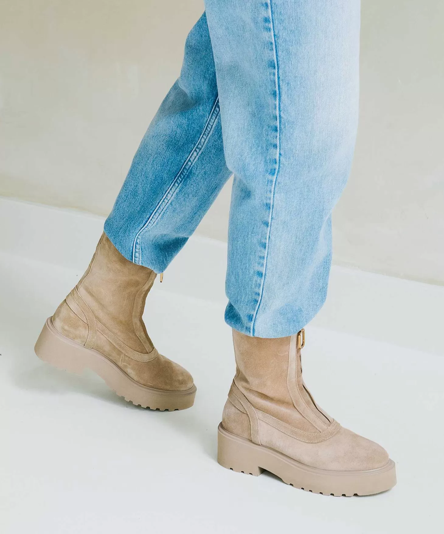 Met Deze Via Vai Boots Met Plateauzool Wil Jij Via Via De Straatjes Verkennen Op Citytrip. Wat Een Stoere 60’S Inspired Boots In Een Nieuw Suède -Leren Jasje. Zie Je Haar Speelse Naden, Goudkleurige Zipper-Key En Lijnenspel? En Haar Donkere Zand Kleur Maakt Haar De Beste Neutraal In Jouw Garderobe – Want Zij Kan Vele Stijlen Aan. Draag Deze Musthaves Met Een Maxi-Jurk Of Een Vegan Leren Rok En Blouse Voor Een Bohemien Chique Stijltje. En Wat Dacht Je Van Gematcht Met Fijne Knitwear En Een Jeans Tijdens Een Middagje Shoppen Of Een Flinke Wandeling? Aan- En Uittrekken Is Een Makkie, Al Doe Je Het Laatste Zo Min Mogelijk. Samenstelling: Buitenkant Leer, Binnenkant Leer, Zool Rubber. Hakhoogte: 5 Cm.