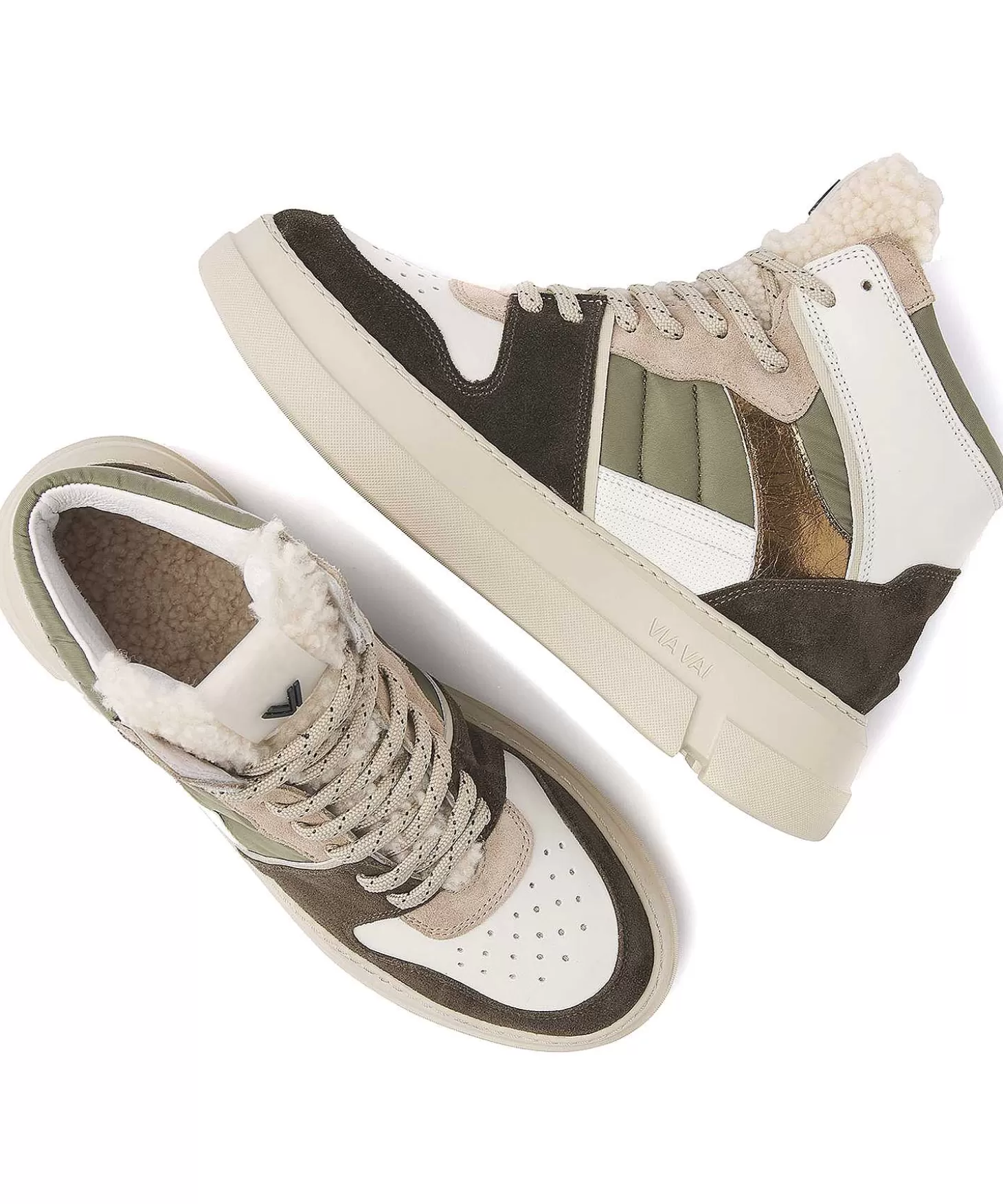 Via Vai Sneaker Blue Matt Is Je-Van-Het. Wat Een Stoer Hoog Model En Prachtige Neutrale Tinten. In Een Kleurpalet Van Offwhite, Ecru, Zand, Vergrijsd Olijf En Bruin Passen Deze Sportieve Stappers Bij Vele Outfits. De Materialenmix Van Glad Leer, Suède, Textiel En Wol (0.A. De Uitneembare Binnenzool Van Schapenvacht) Maken Haar Herfst- En Winterproof. Draag Ze Met Een Sweater En Jeans Op Citytrip Of Combineer Blue Matt Met Knitwear En Een Vegan Leren Rok Of Tregging. En Heb Je De Stabiele Plateauzool Al Gespot? Uitneembare Inlegzool Van Schapenvacht. Zooldikte: 3,5 Cm. Samenstelling: Buitenkant Leer, Binnenkant Stof En Leer, Zool Kunststof.