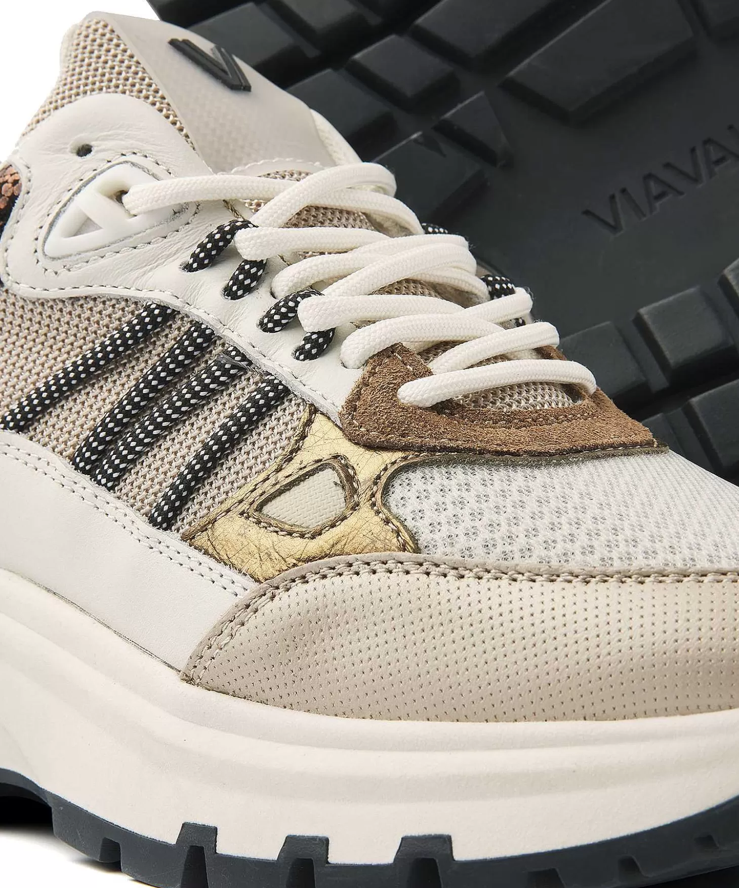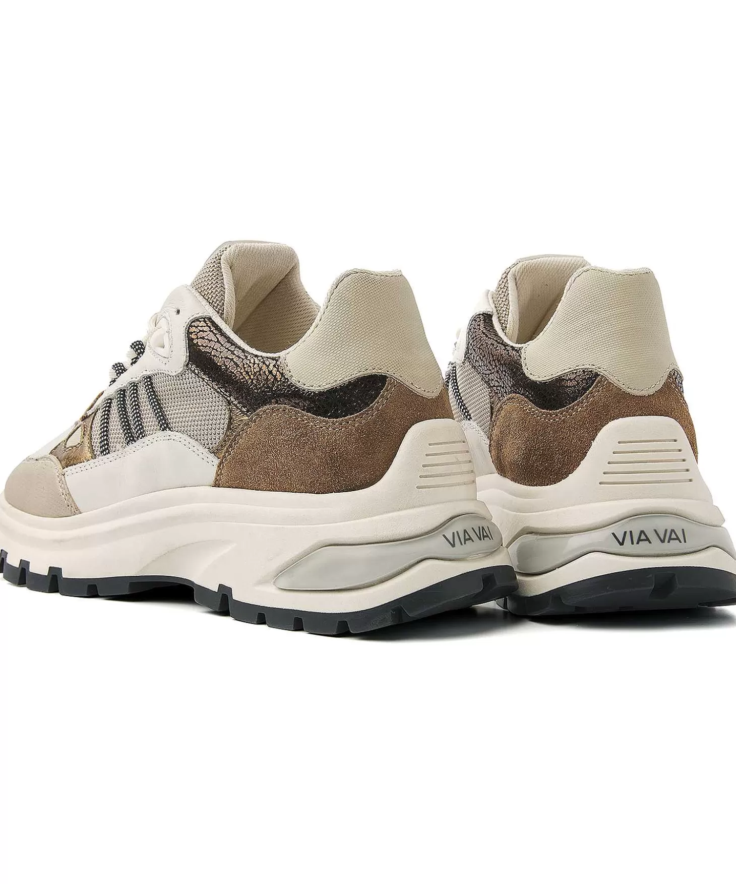 Chunky & Ton-Sur-Ton Is Deze Via Vai Sneaker Een Prachtaanwinst Aan Je Voeten. Van Gemixte Materialen (Suède & Glad Leer, Mesh, Structuur Leer + Metallic Fibers) In Een Natuurlijk Kleurpalet Van Offwhite, Zand, Camel, Taupe En Metallic Bruin Zijn Dit Schoentjes Om Mee Weg Te Lopen. Het Zalige Voetbed Is Uitneembaar En De Chunky Zool Geeft Direct Extra Lengte. Je Draagt Deze Sneakers Met Veel Uit Jouw Kledingkast, Van Jeans, Tregging, Pantalon Tot Maxi-Jurk Of Jumpsuit En Ze Geeft Elke Outfit Sportieve Klasse. Het Weerstaan Van Liz Dae Valt Absoluut Niet Mee. Uitneembaar Voetbed. Zooldikte: 3 Cm. Samenstelling: Buitenkant Leer, Binnenkant Leer, Zool Rubber.