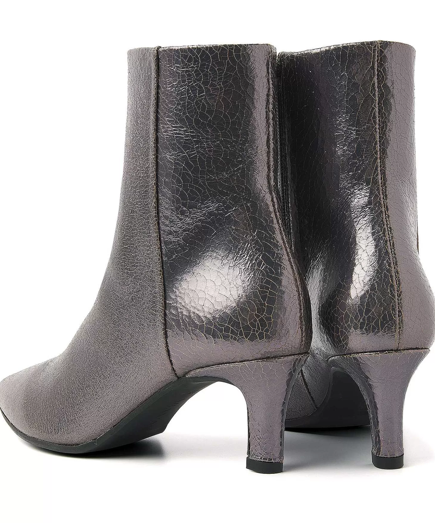 Crackle Meets Metallic Met Deze Via Vai Enkellaars In Metallic Craquelé Leer. In Een Multimatch Taupe Kleur Met Een Zweempje Paars Is Ze Super Feminien En Heb Je Haar Trechterhakje Al Gespot? Minimalistisch Met Haar Puntneusje, Enkele Zijnaad En Ritssluiting Past Ze Bij Vele Stijlen. Van Binnen En Buiten Van Leer Met Een Rubberzool Houdt Ze Niet Van Stilzitten. Je Draagt Haar Met Een Pantalon, Jeans, Vegan Leren Broek Tot Bij Een Jurk Of Rok En Ze Verveelt Nooit. Geef Maar Toe, Jij Wilt Norah Lou! Samenstelling: Buitenkant Leer, Binnenkant Leer, Zool Rubber. Hakhoogte: 6 Cm.