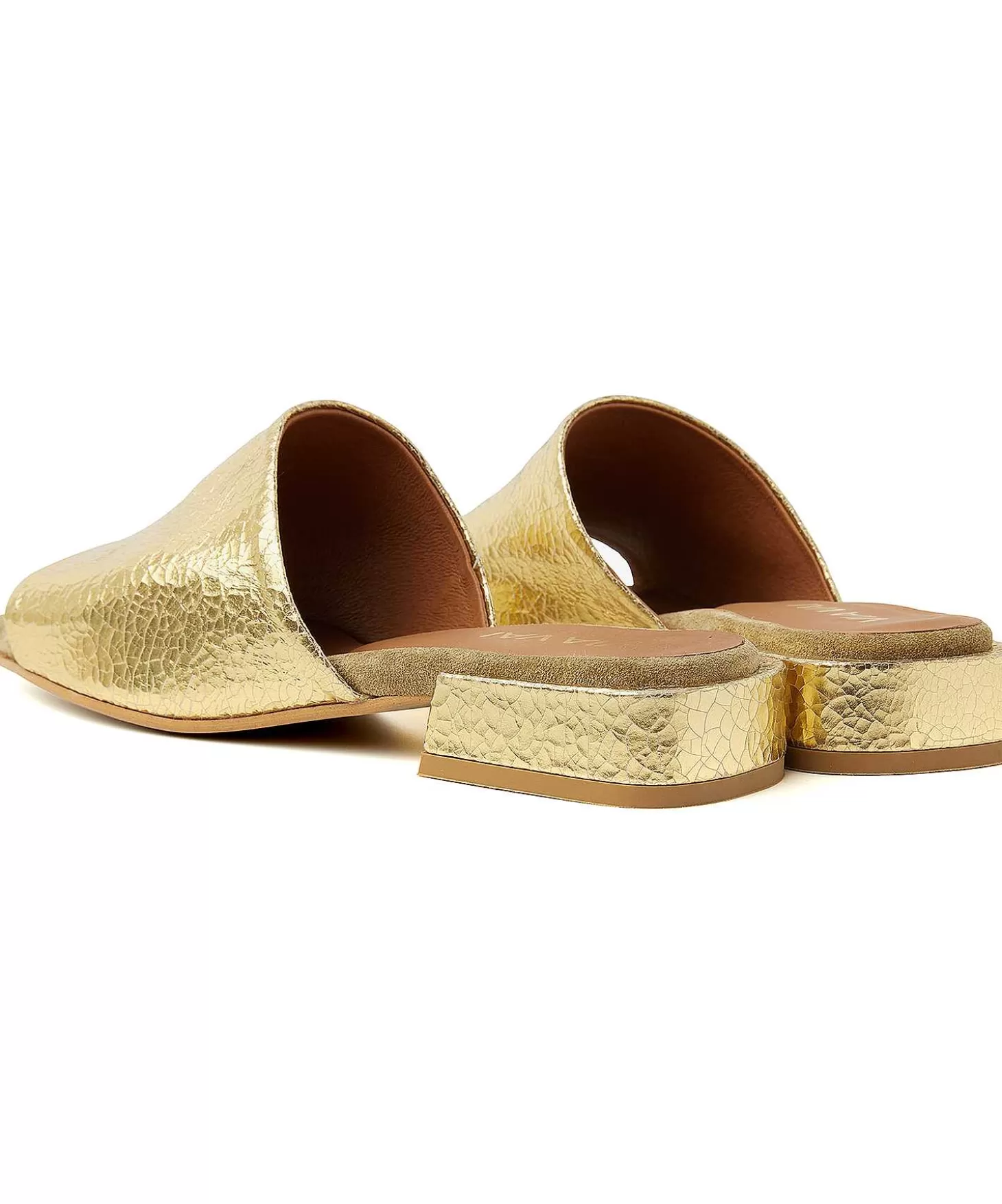 These Are The Golden Years Schijnt Deze Metallic Via Vai Slipper Te Roepen. In Goudkleurig Craquelé Leer Met Leren Voe…