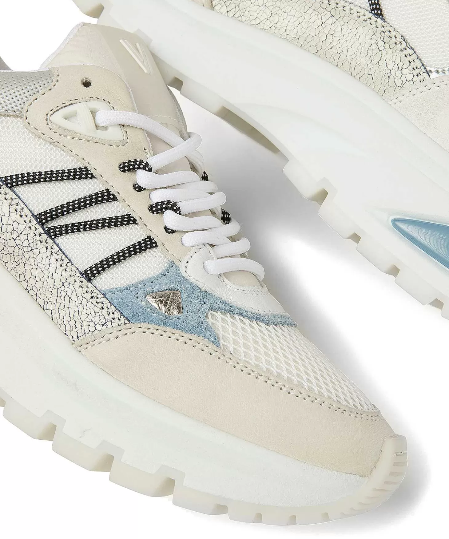 Wandel Je Mee Met Liz Dae? Deze Via Vai Sneaker Met Chunky Zool En Zomers Kleurpalet Ademt Één En Al Sportieve Avonturen. In Offwhite, Ecru, Beige, Lichtblauw, Zilver En Marine En Een Speelse Materialenmix Zijn Deze Sneakers Een Lust Voor Het Oog. Ruw, Craquelé En Glad Leer Worden Afgewisseld Met Mesh, Metallic En Textiel En Het Zachte Voetbed Is Uitneembaar. Super Comfortabel En Met Uitmuntende Grip Dankzij Het Stevige Profiel Was Fashionable Kilometers Maken Zelden Zo Relaxt. Uitneembaar Voetbed. Zooldikte: 3 Cm. Samenstelling: Buitenkant Leer, Binnenkant Leer, Zool Rubber.